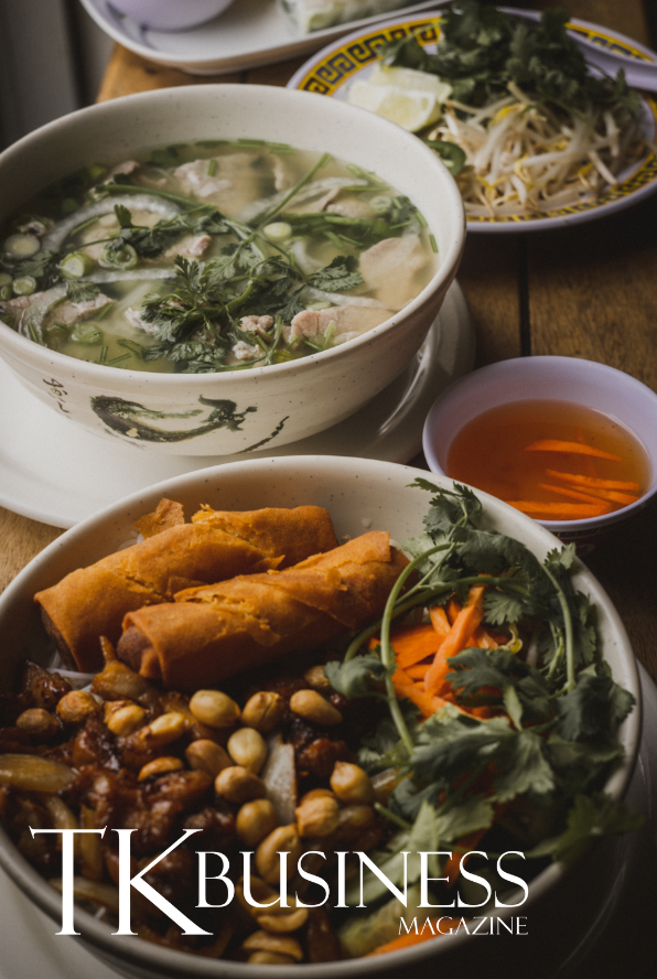 Following his high school graduation in 1988, Vu moved to Topeka and met his wife, Mary Jane, who had immigrated to Kansas from the Philippines. Welcomed by a large immigrant population in Highland Park, Vu often cooked for the couple’s new Vietnamese and Filipino friends, forging supportive relationships and eventually finding work as a Chinese-cuisine chef. He cooked in local restaurants for two decades, including a lengthy stint overseeing the Dillons’ Chinese Kitchen. Using many of his own recipes, he cultivated a loyal clientele.